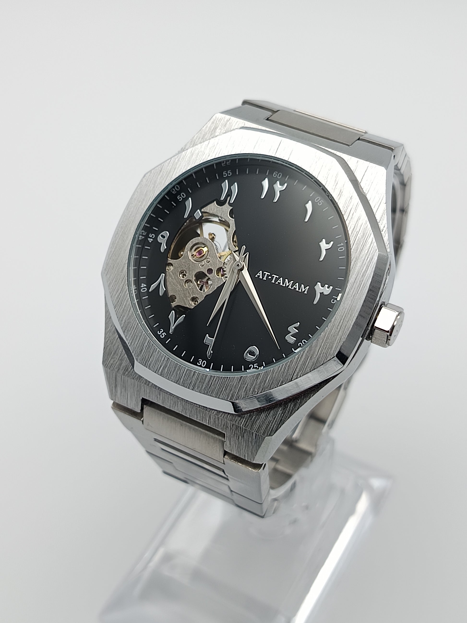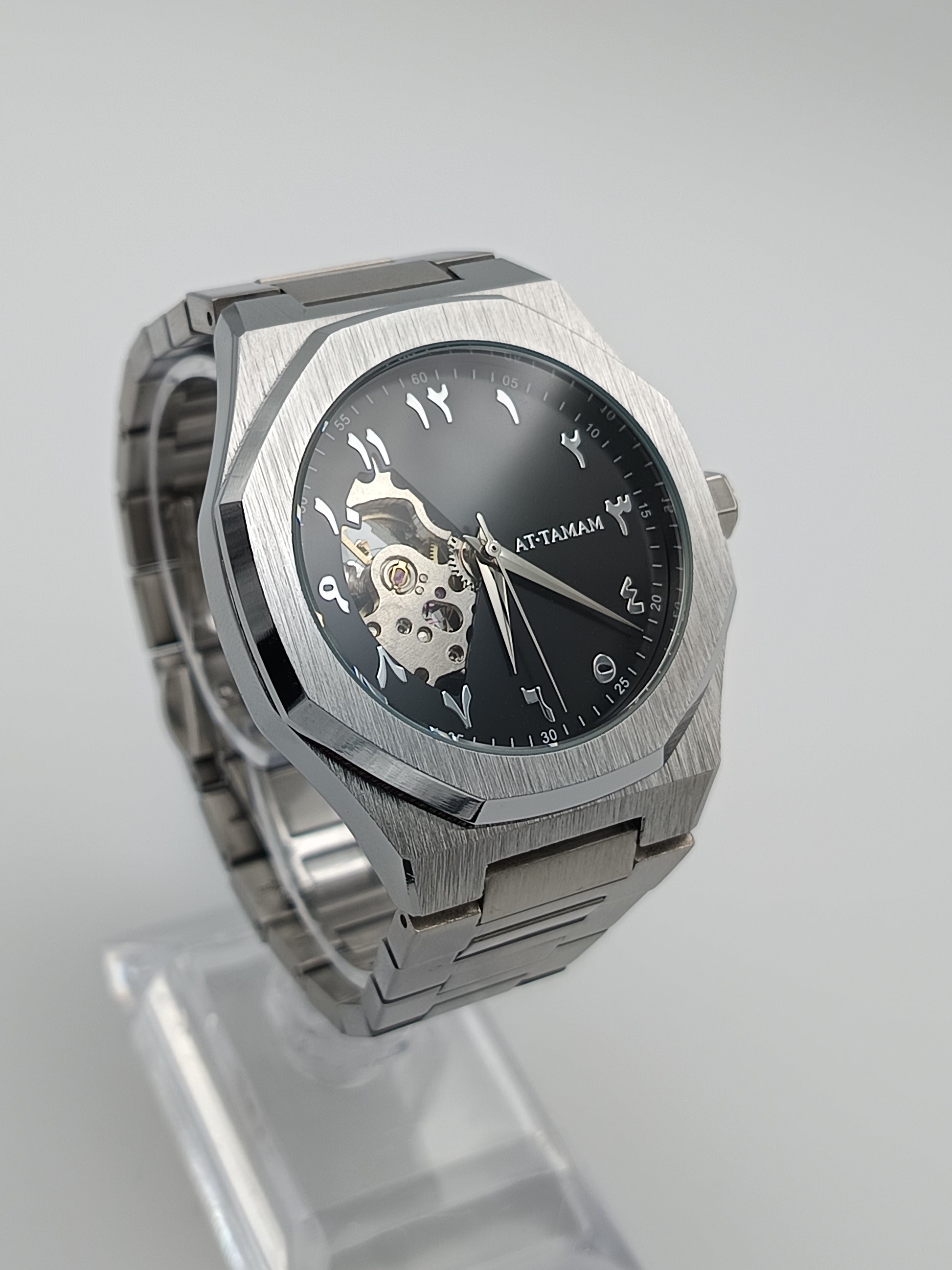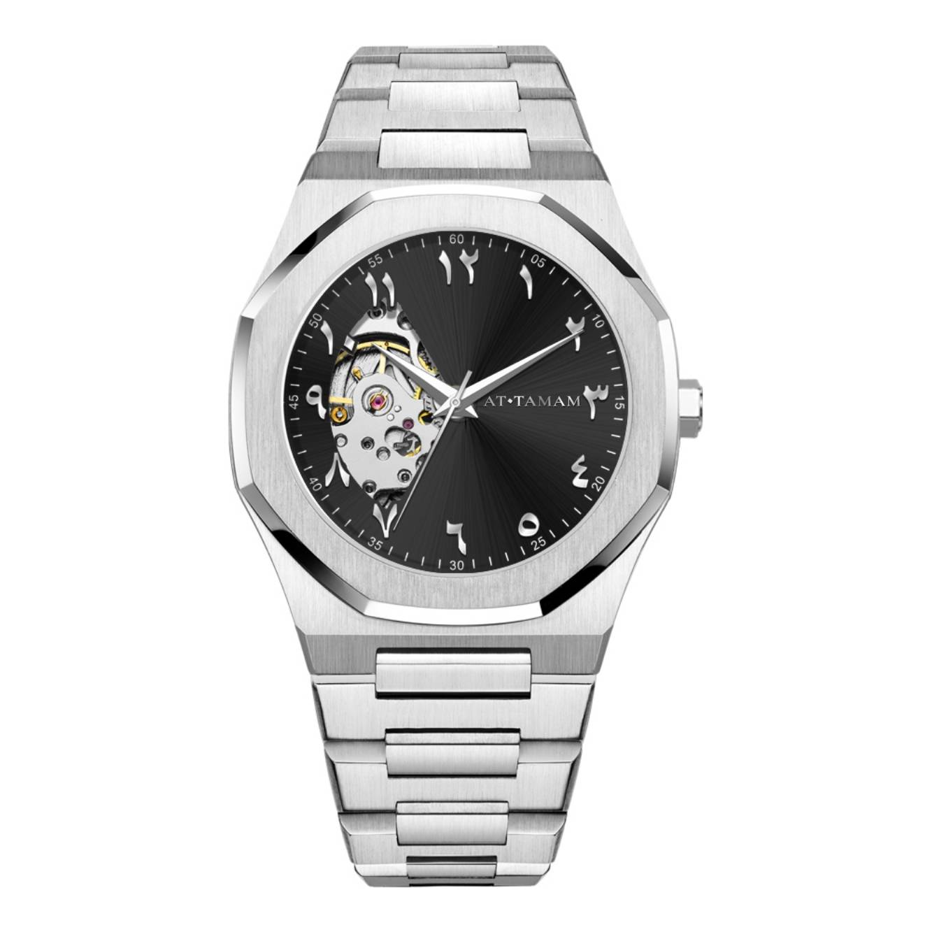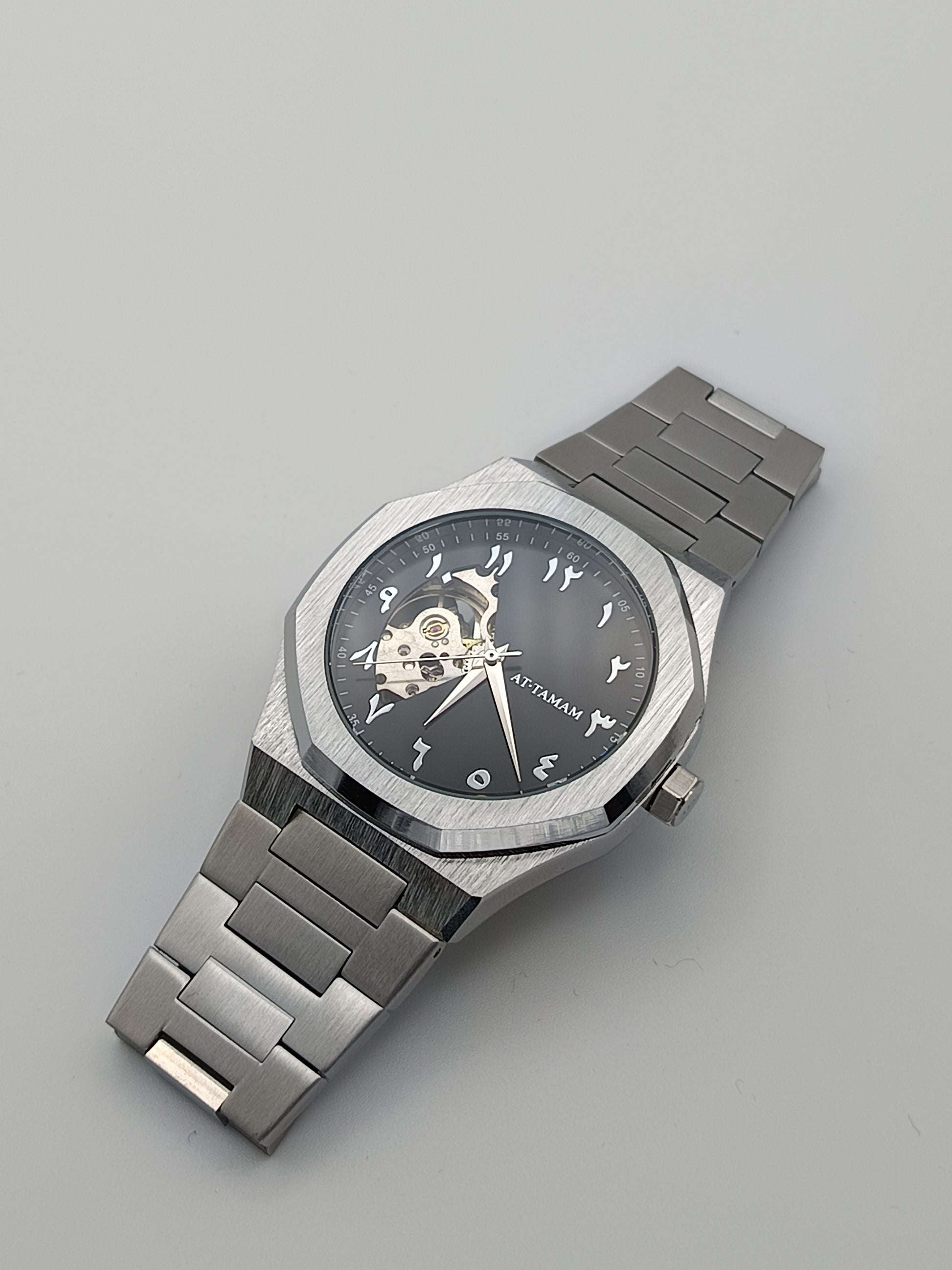 A watch made to perfection. The beginning of AT TAMAM. An essential designed for everyday elegance, providing both tradition and beauty. Powered by natural wrist movement through the use of an automatic movement. Finished off with an open heart dial, framed by arabic numerals.